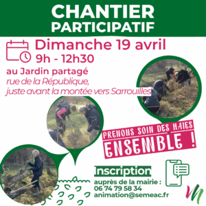 Chantier participatif Dimanche 19 avril 2026 9h-12h30 RDV aux jardins partagés